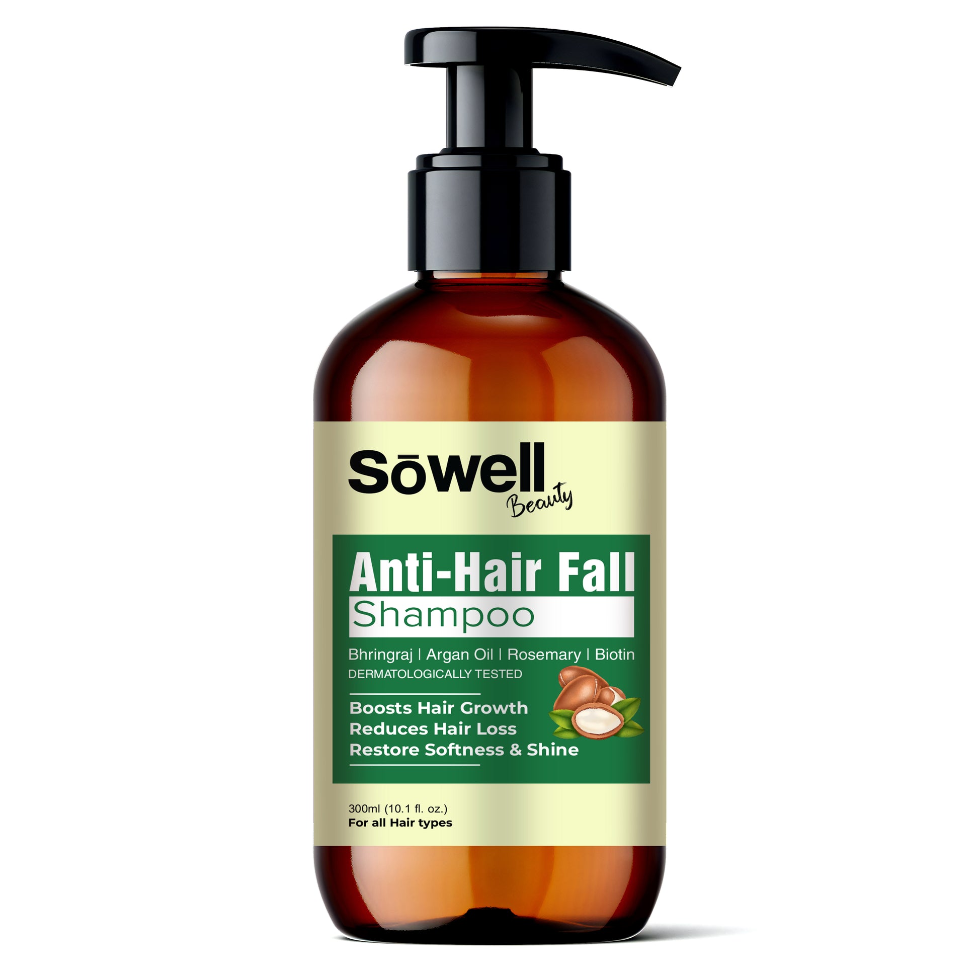 SOWELL BEAUTY "Anti-hair fall shampoo" refers to a specialized hair care product designed to address the issue of hair loss or excessive shedding. These shampoos typically contain ingredients that strengthen hair follicles, promote hair growth, reduce breakage, and improve overall hair health. They often include vitamins, proteins, minerals, and other nourishing agents to support scalp health and encourage robust hair growth.