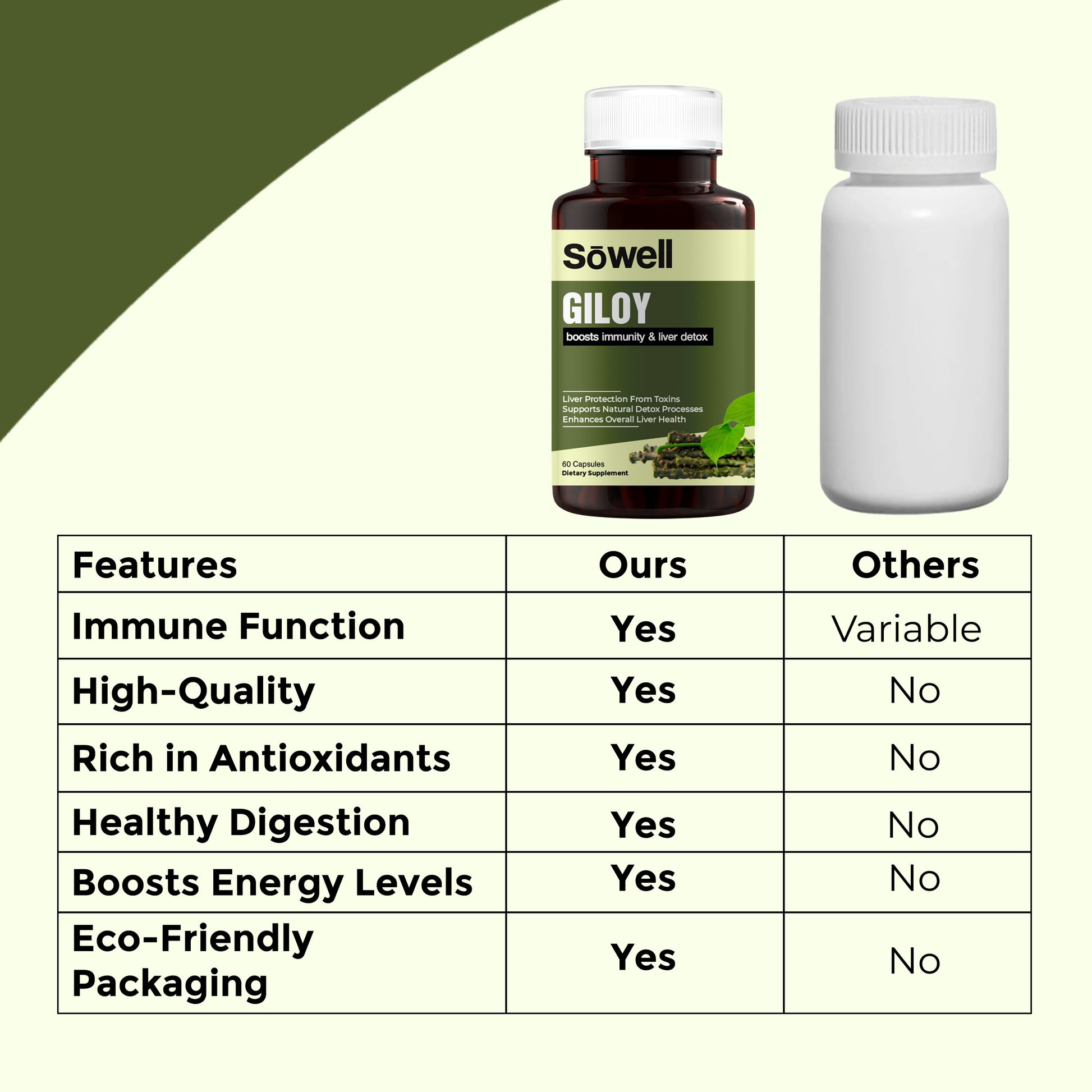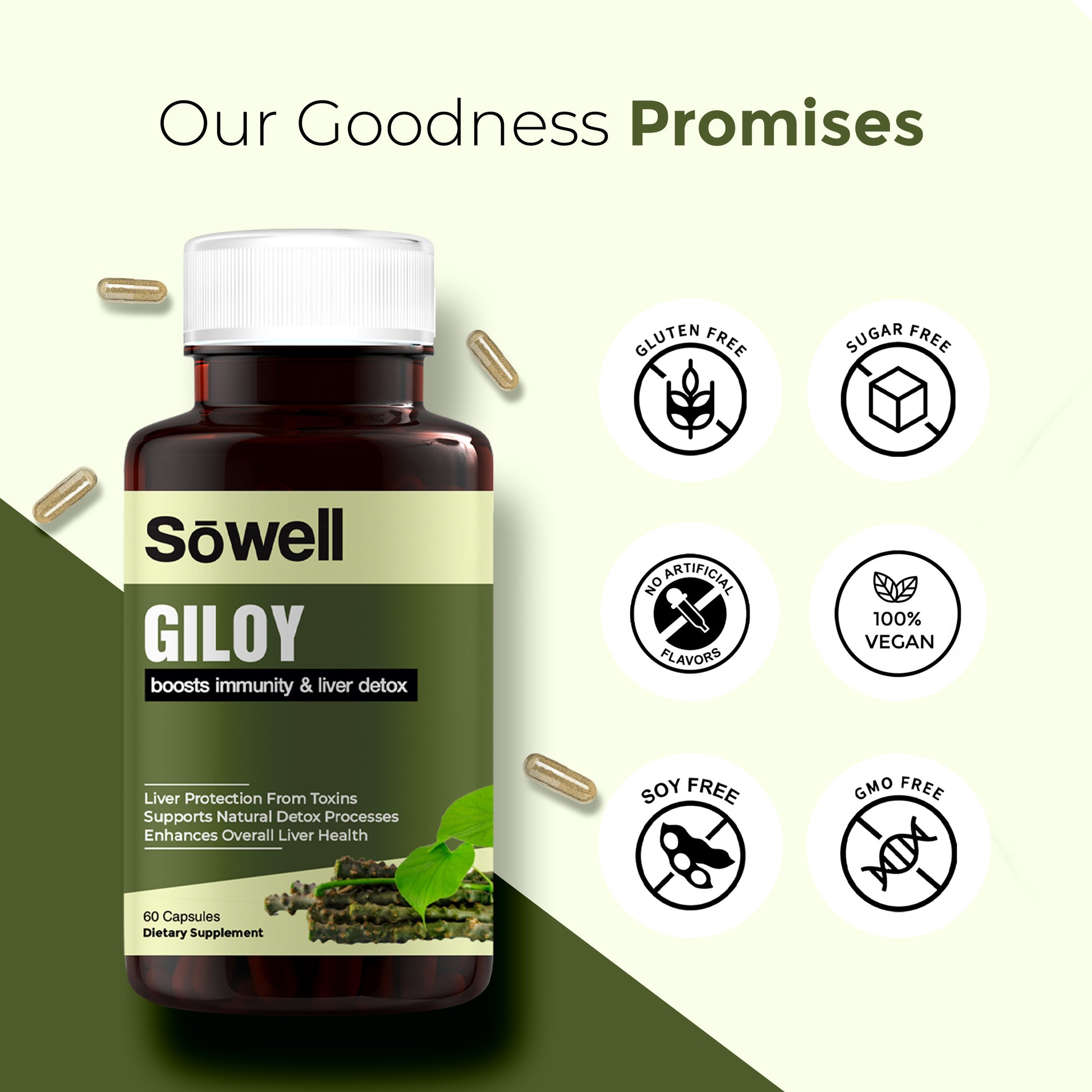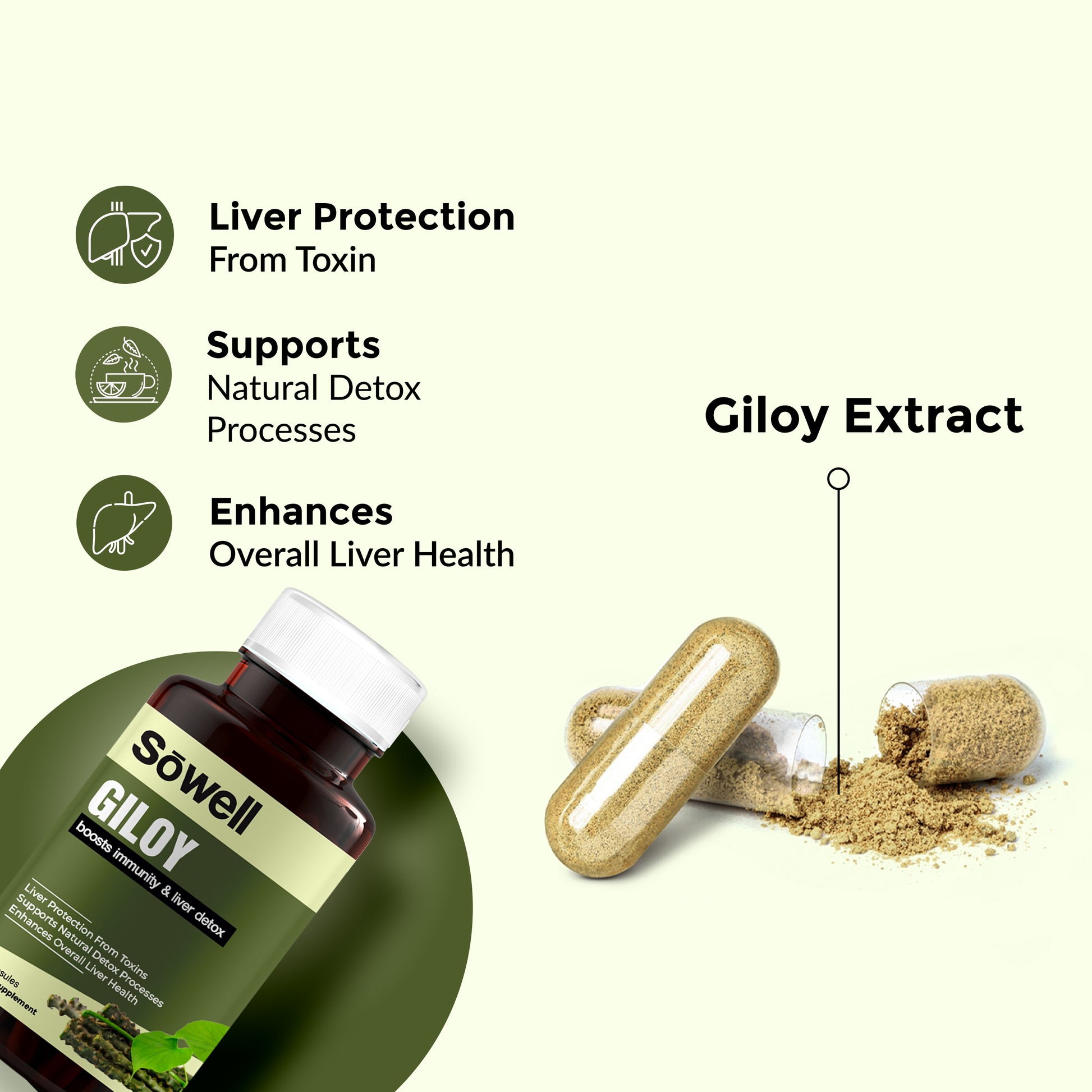 Sowell Health Giloy Supplement provides a high-quality, standardized giloy extract, ensuring consistent potency and efficacy. Our formula is free from artificial additives and preservatives, making it a pure and natural choice for supporting immune function and detoxification. The supplement is offered in vegetarian capsules, catering to a wide range of dietary preferences, and is designed for optimal absorption.
