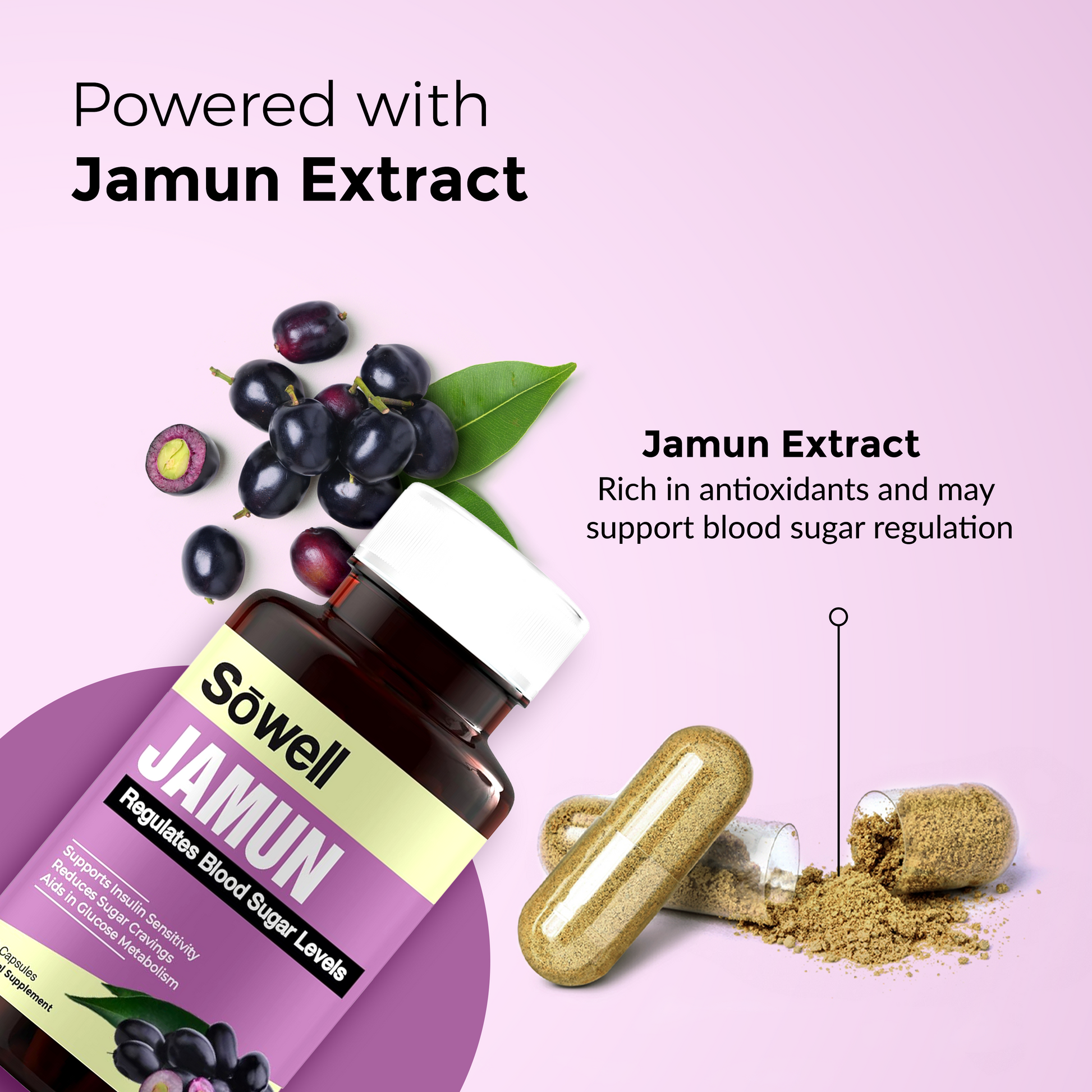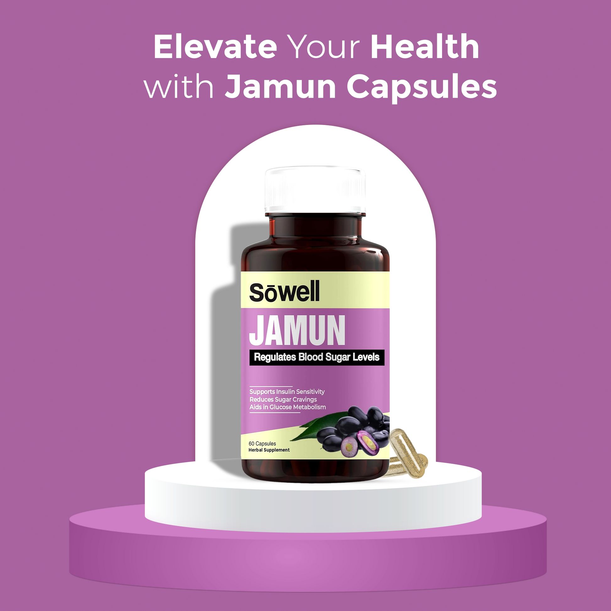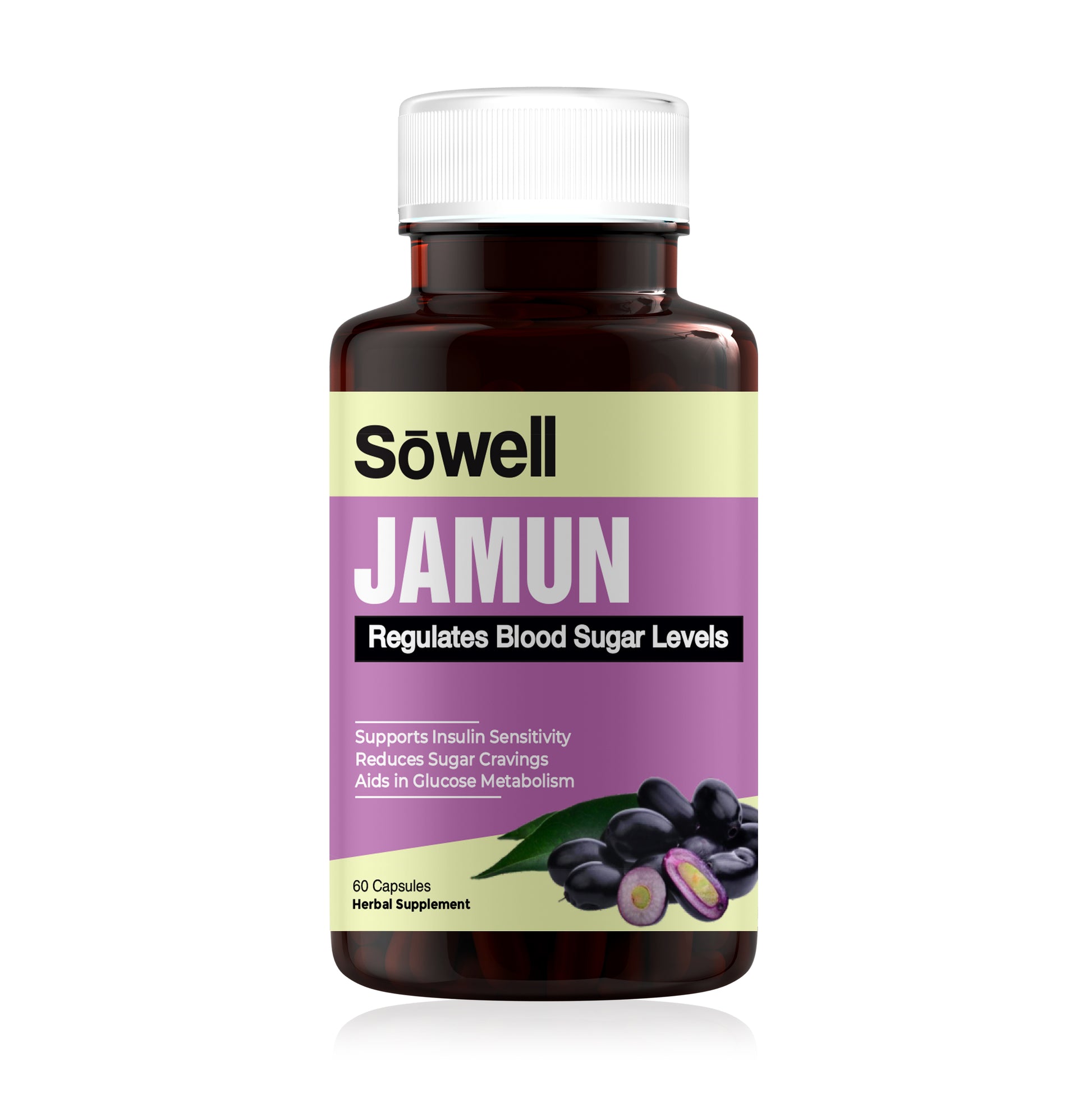Sowell Health Jamun Supplement provides a high-quality, potent source of jamun extract combined with essential vitamins and minerals. Our formulation is designed to support blood sugar regulation, enhance antioxidant defense, and promote digestive and metabolic health, ensuring you receive maximum benefits.