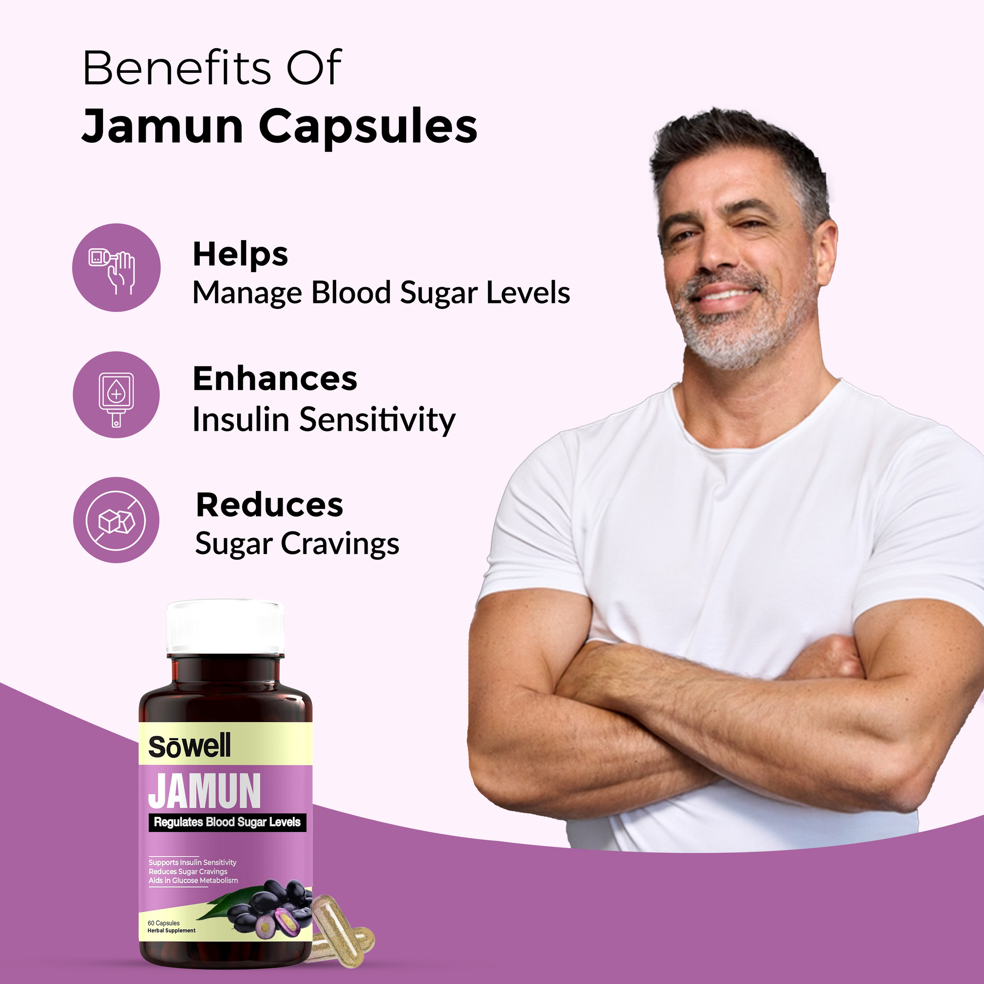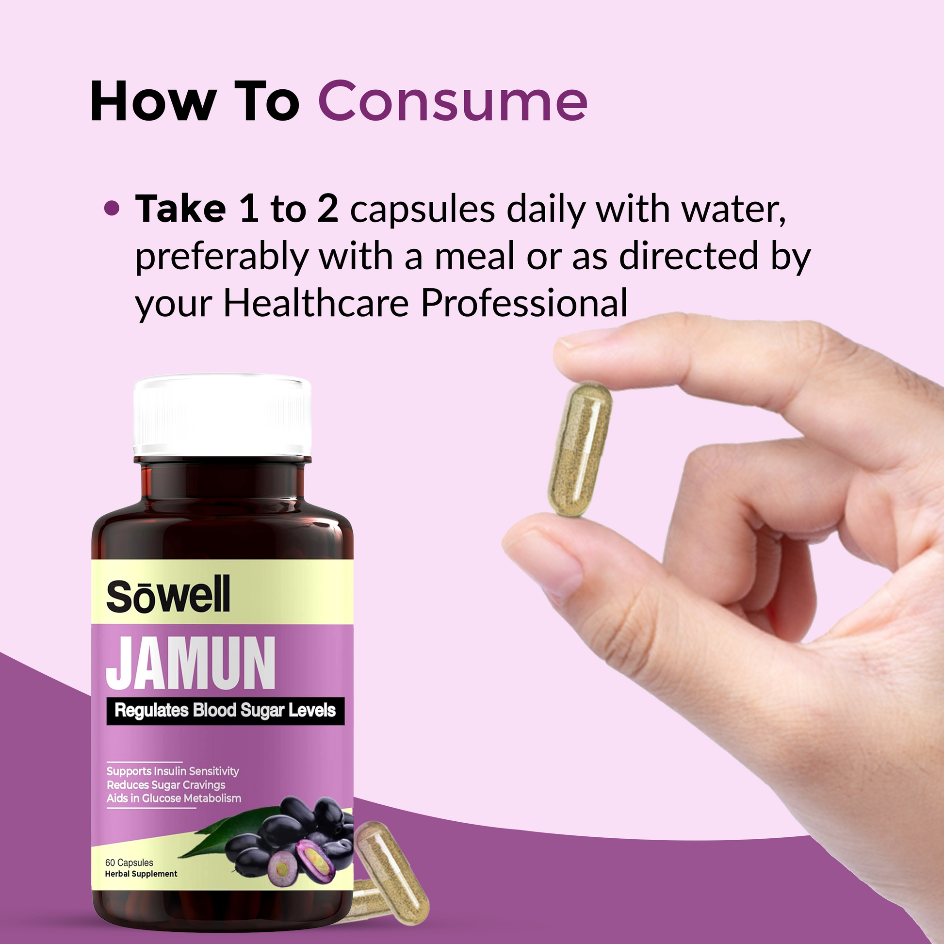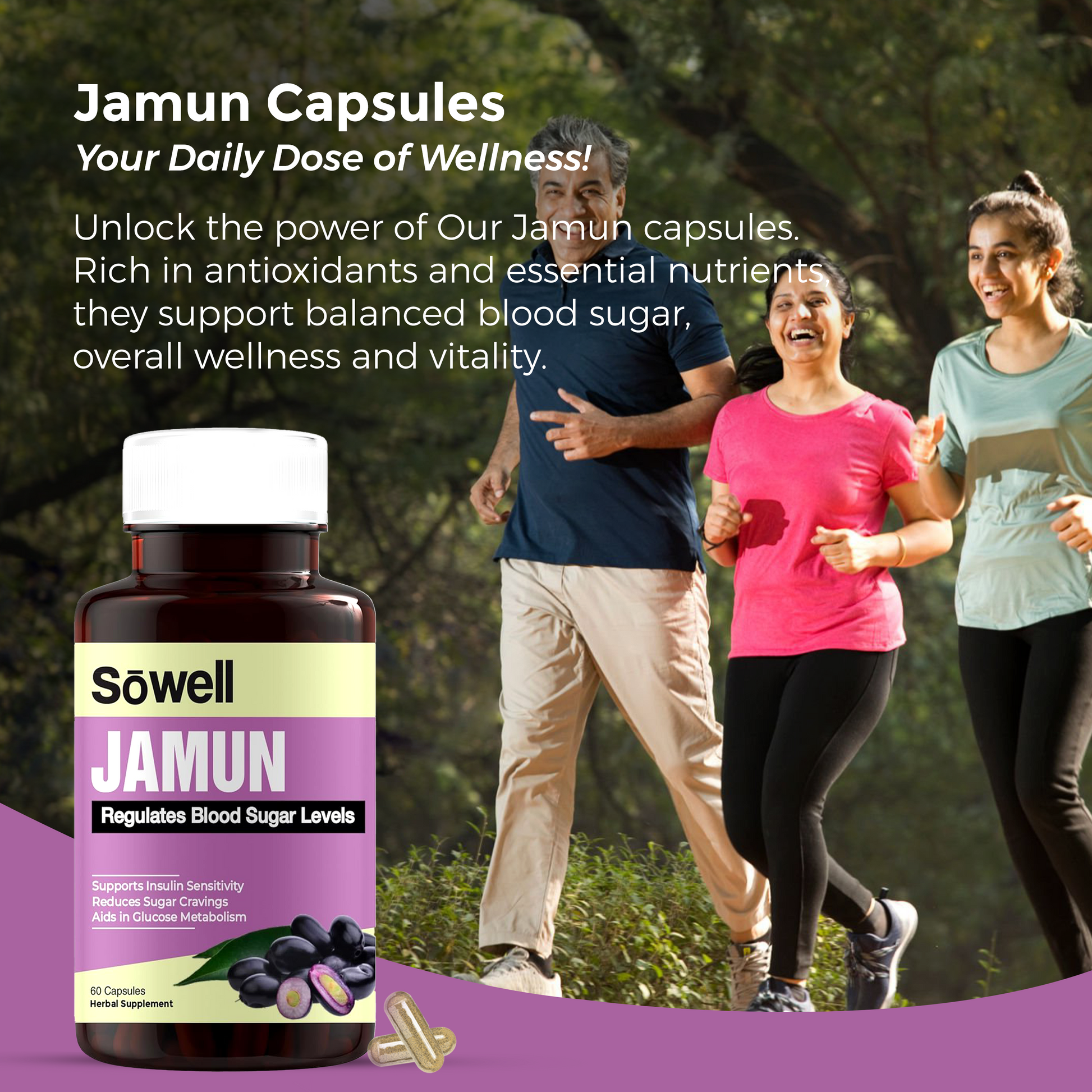 Sowell Health Jamun Supplement provides a high-quality, potent source of jamun extract combined with essential vitamins and minerals. Our formulation is designed to support blood sugar regulation, enhance antioxidant defense, and promote digestive and metabolic health, ensuring you receive maximum benefits.