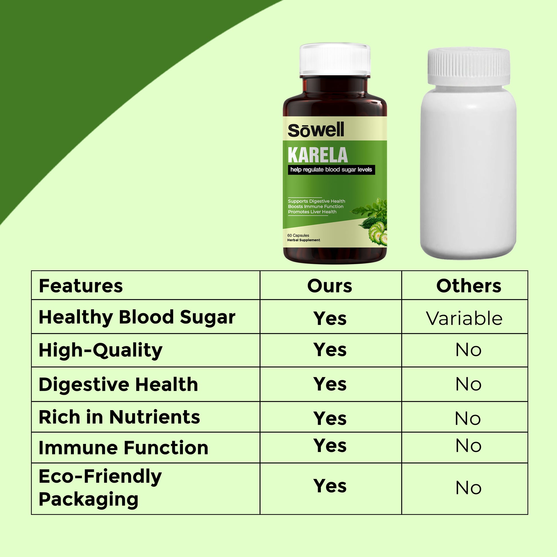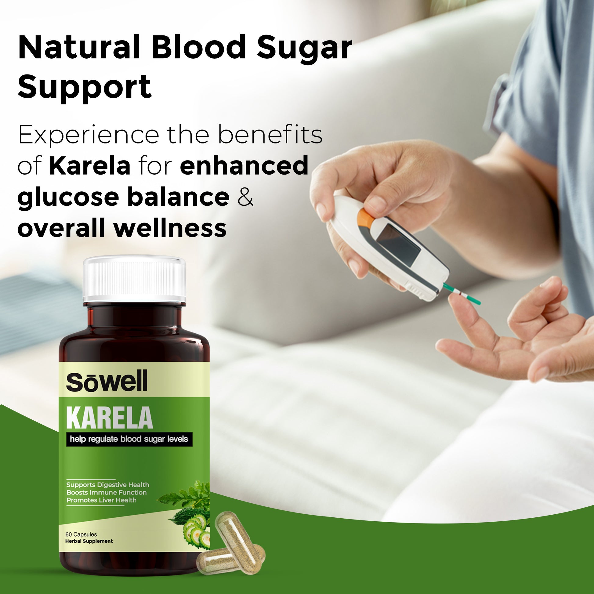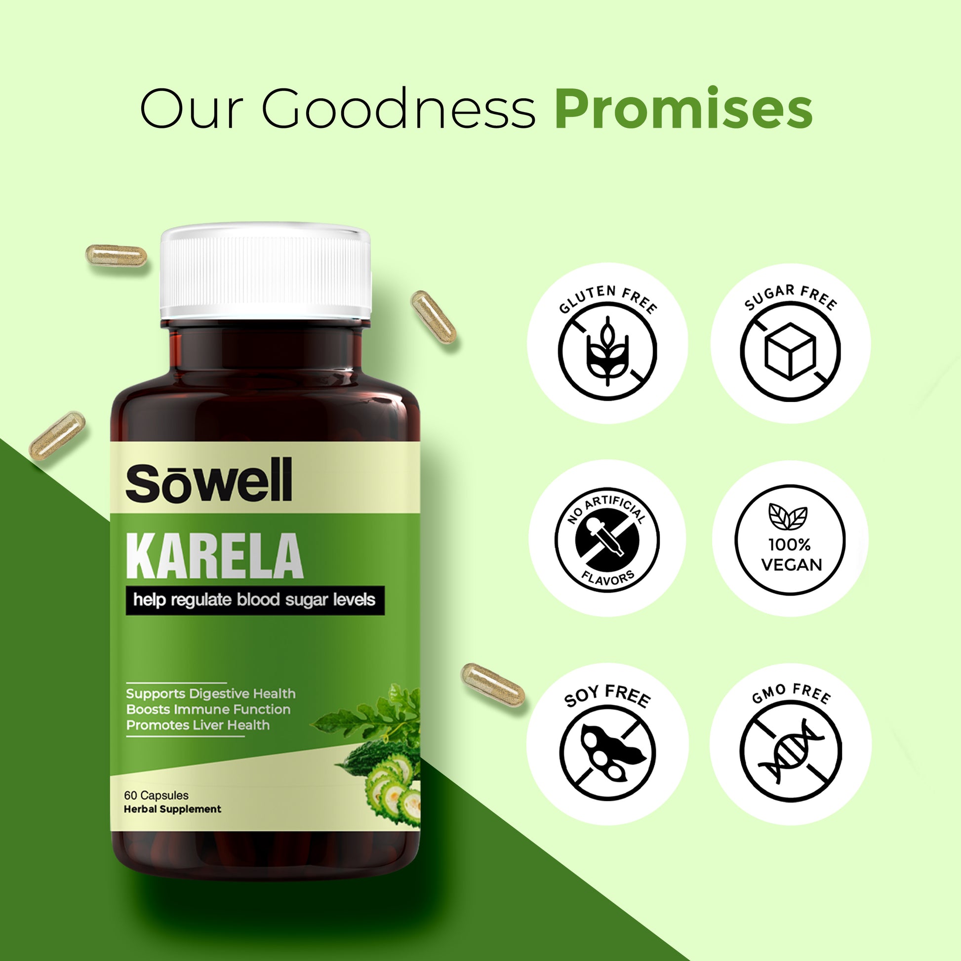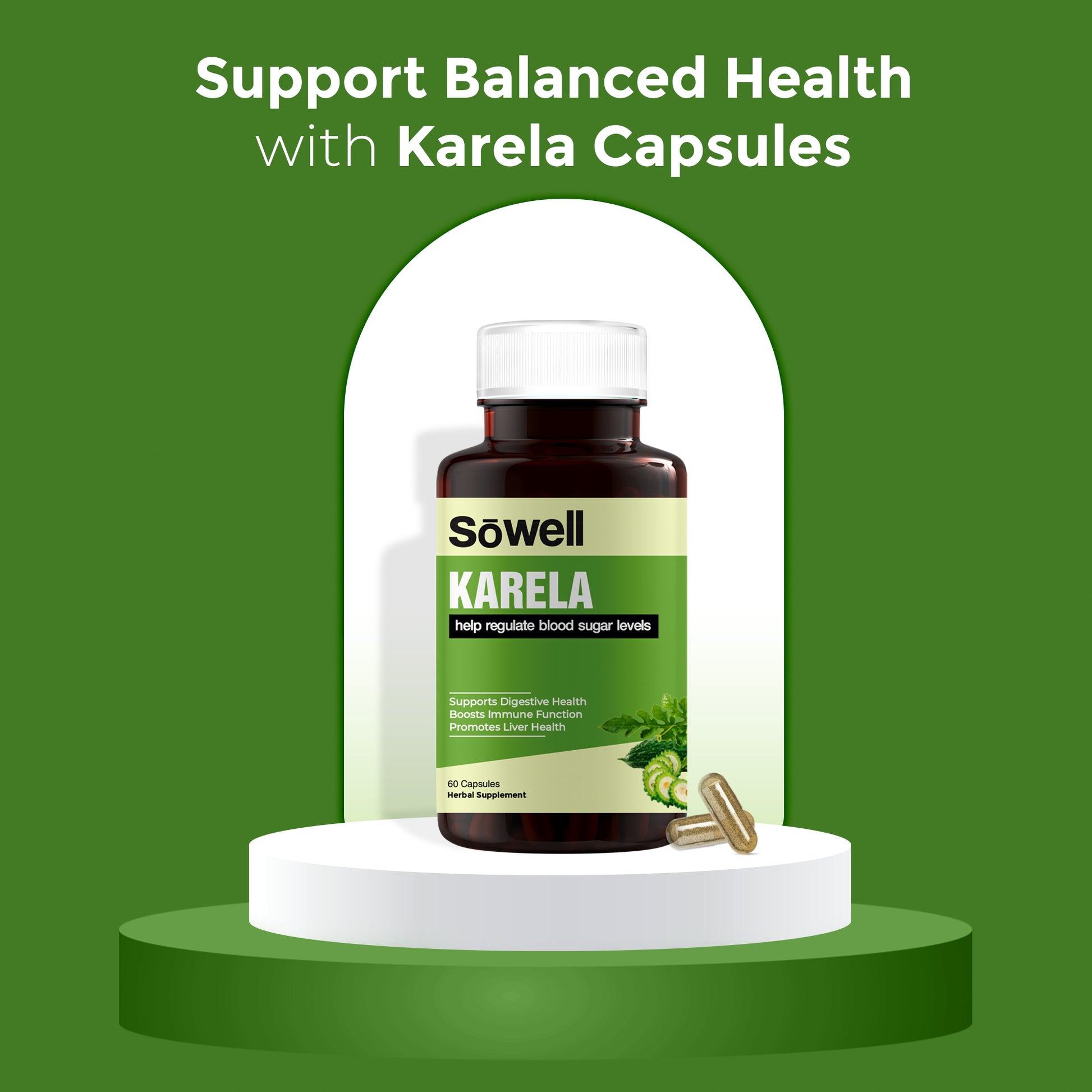 Sowell Health Karela Supplement is formulated with high-quality Karela extract, known for its potent health benefits. Our supplement supports blood sugar regulation, enhances digestive health, and boosts immunity, making it a comprehensive choice for overall well-being.